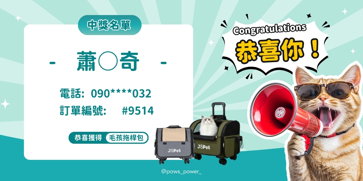 再次恭喜中獎,敬請持續關注【爪族動力】更多毛孩福利活動🐾🎁